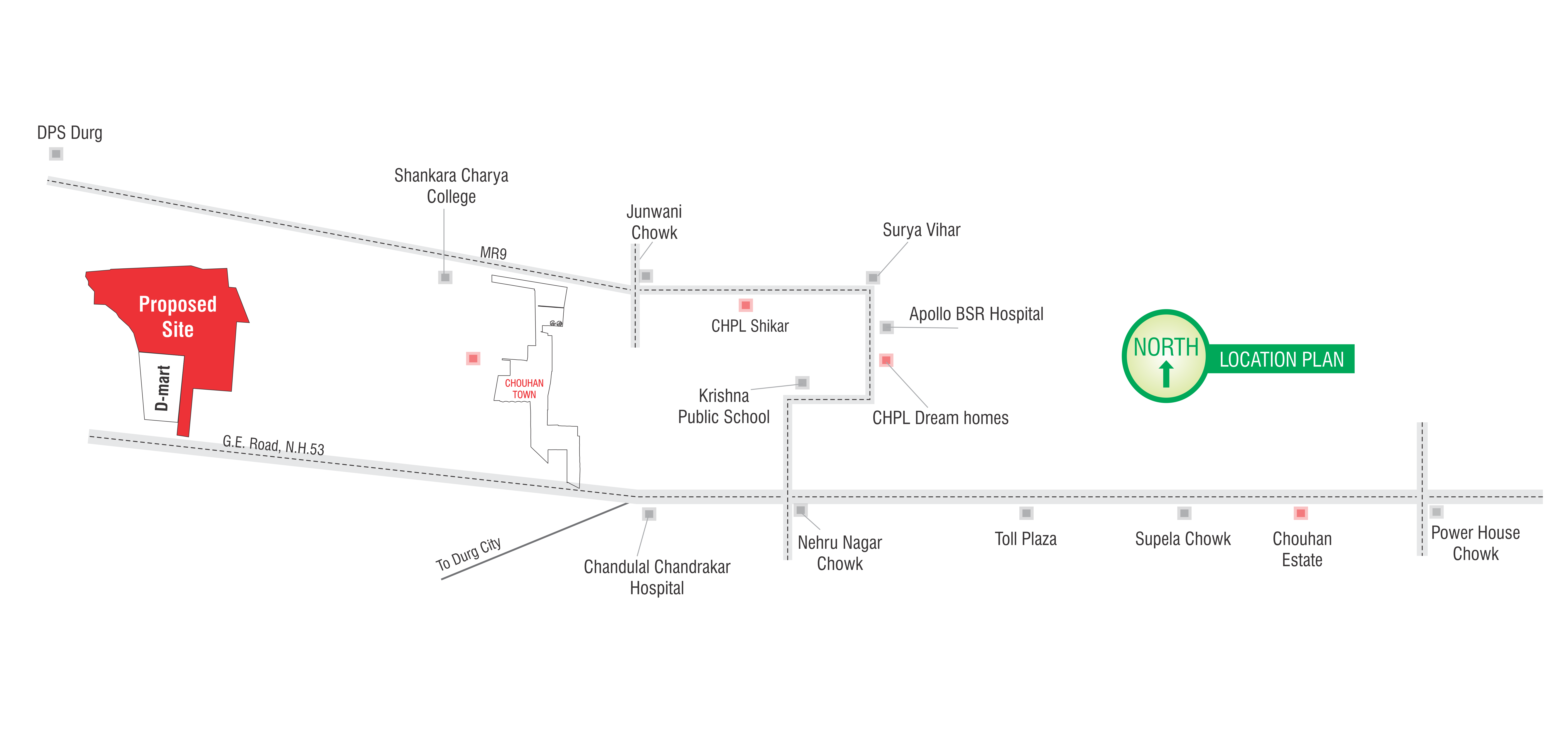 Chouhan Business Center, by Chouhan Group, is ideally located near Nehru Nagar Chowk on N.H. 53, beside D-mart in Bhilai. This prominent commercial space offers exceptional connectivity to key areas like Drug and Bhilai, making it an excellent choice for businesses seeking visibility and convenience. With a substantial area designed to meet diverse commercial needs, the Chouhan Business Center combines strategic location with easy access to major transportation routes and amenities, ensuring your business thrives in a dynamic economic environment.